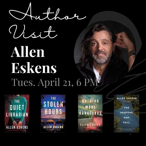 Join us as we welcome Minnesota author Allen Eskens to the library on Tuesday, April 21 at 6:00 pm!